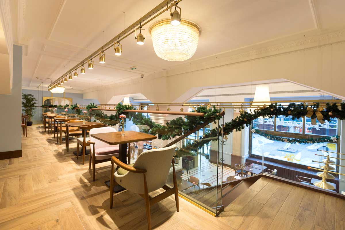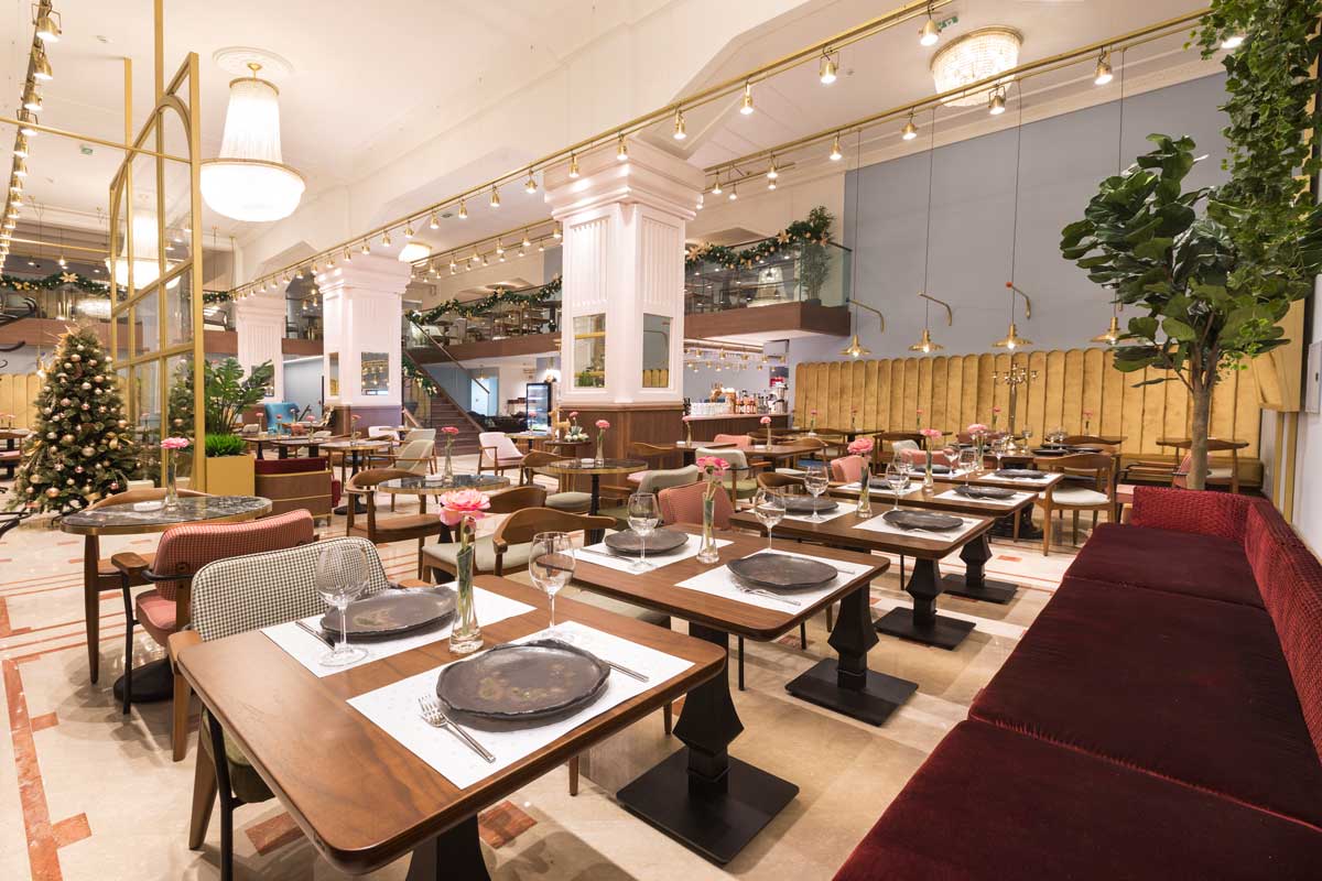 Velik, otvoren prostor obogaćen mesinganim detaljima i nijansama braon i purpurne, nežno oživljava bogato nasleđe ovog legendarnog mesta. Želeli smo da zadržimo ključne elemente, a da istovremeno uvedemo i stvorimo savremenu i opuštenu atmosferu zato što u Ruskom caru – svi smo elita.