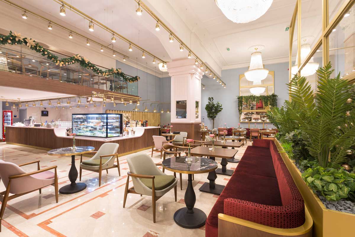 Velik, otvoren prostor obogaćen mesinganim detaljima i nijansama braon i purpurne, nežno oživljava bogato nasleđe ovog legendarnog mesta. Želeli smo da zadržimo ključne elemente, a da istovremeno uvedemo i stvorimo savremenu i opuštenu atmosferu zato što u Ruskom caru – svi smo elita.